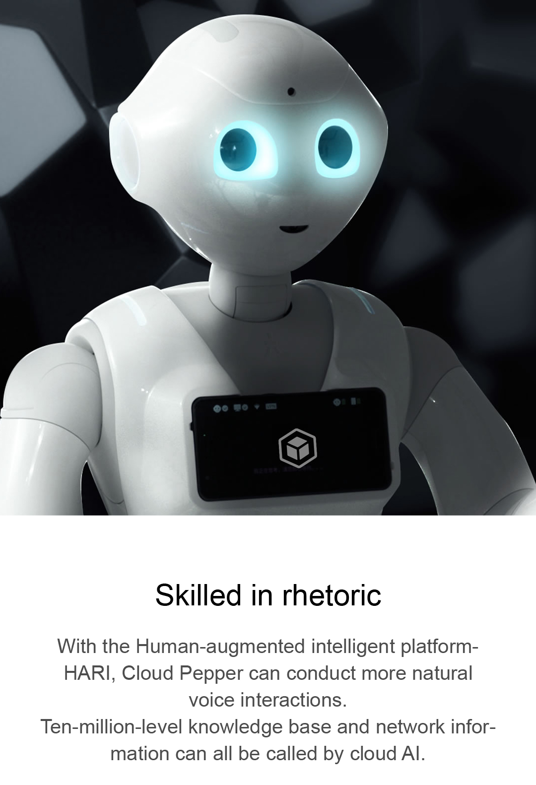 With the Human-augmented intelligent platform HARIX, Cloud Pepper can conduct more natural voice interactions.