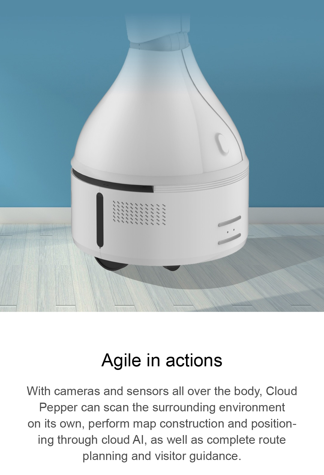 With cameras and sensors all over the body, Cloud Pepper can scan the surrounding environment