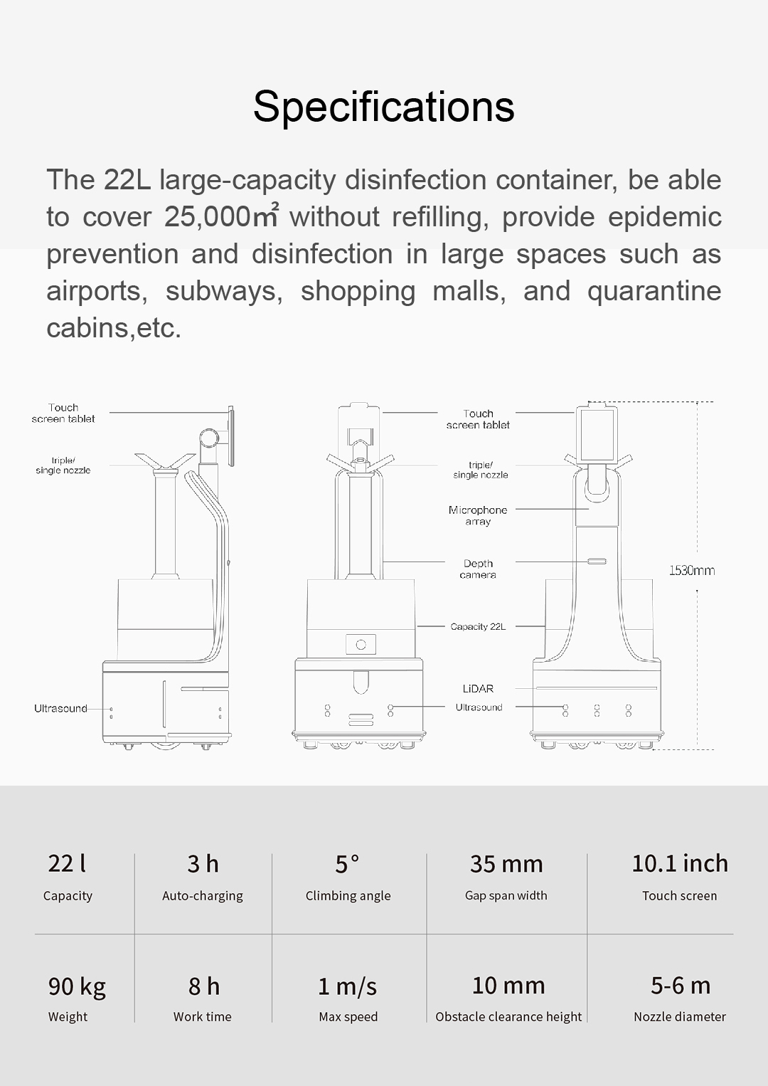 The 22L large-capacity disinfection container, be able to cover 25,000㎡ without refilling, provide epidemic prevention and
