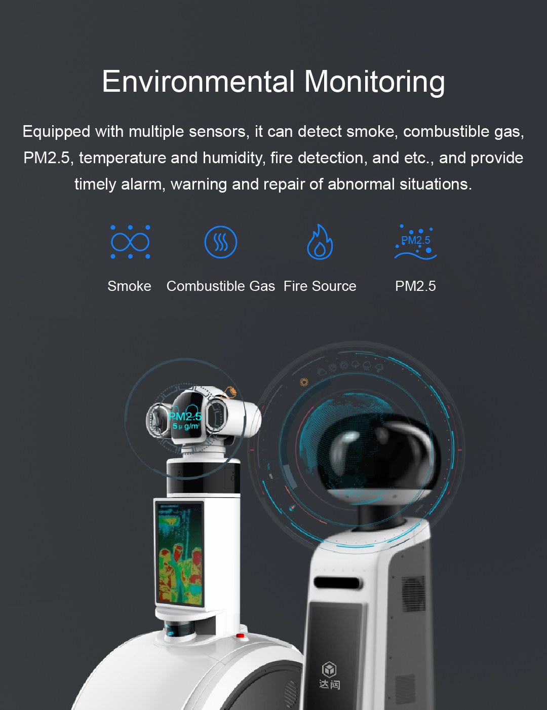 PM2.5, temperature and humidity, fire detection, and etc., and provide