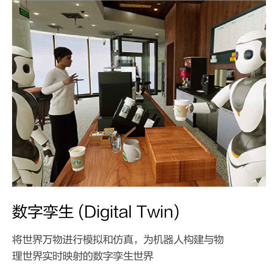 將世界萬物進行模擬和仿真,為機器人構建與物理世界實時映射的數字孿生世界