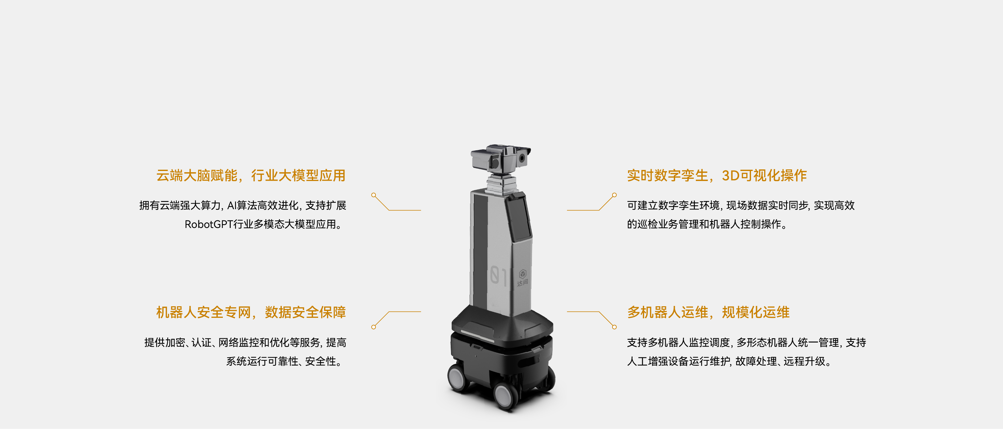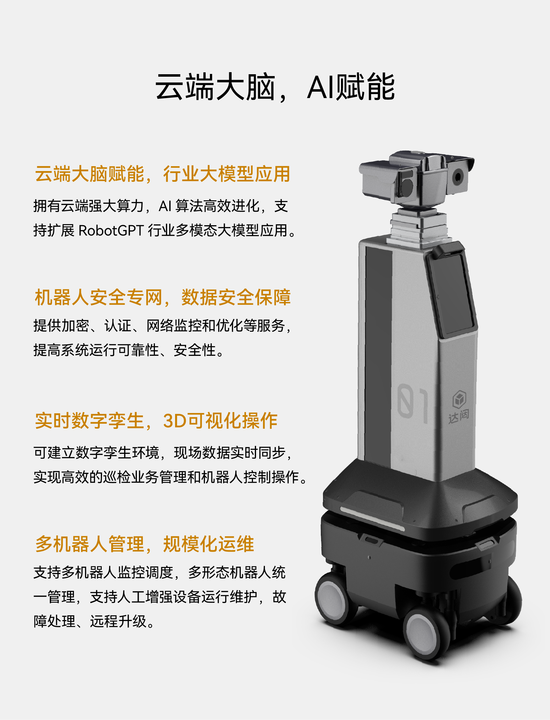 四舵輪底盤可360°全向移動,越障、爬坡、過溝能力超強;機身設計小巧,適合狹窄、復雜環(huán)境