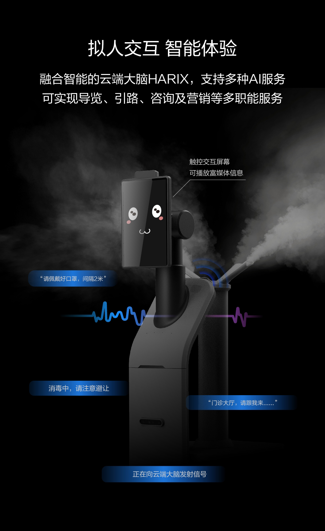 融合智能的云端大腦HARIX支持多種AI服務(wù),可實(shí)現(xiàn)導(dǎo)覽、引路、咨詢及營銷等多職能服務(wù)
