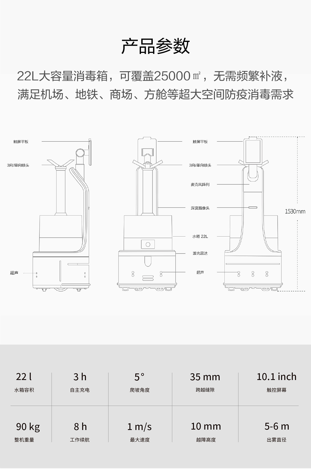 22L大容量消毒箱,可覆蓋25000㎡,無需頻繁補(bǔ)液,滿足機(jī)場、地鐵、商場、方艙等超大空間防疫消毒需求